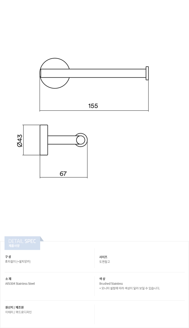 QUADRO 악세사리 수건걸이 60 Cm QA201, QUADRO 악세사리 옷걸이 QA101