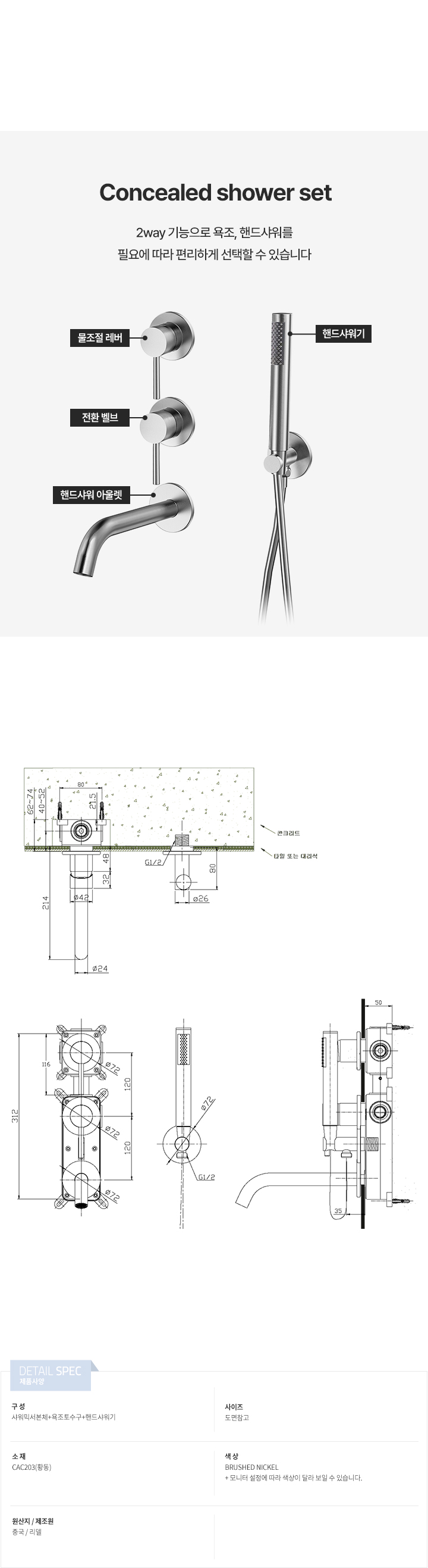 미니미니 매립샤워욕조수전 2웨이 세로