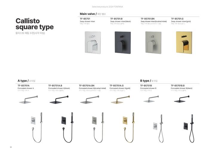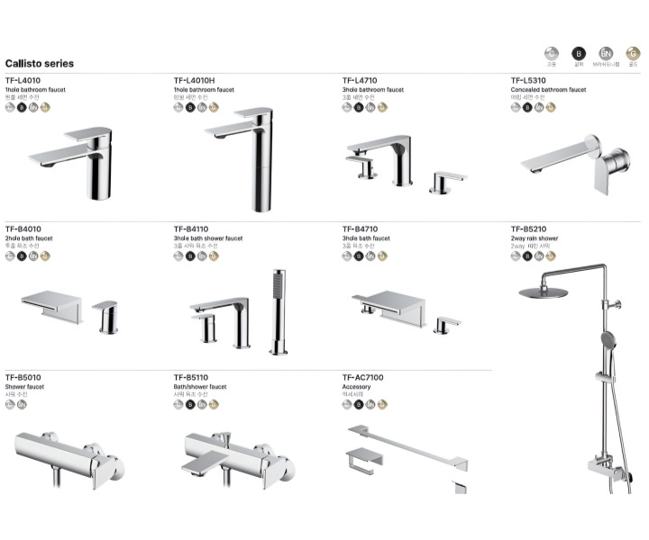 칼리스토 탑볼세면수전_브러쉬드니켈 4010H.BN, 칼리스토 세면수전_브러쉬드니켈 L4010.BN, 칼리스토 2홀데크형욕조수전_ 블랙 B4010.B, 칼리스토 2홀데크형욕조수전_크롬 B4010