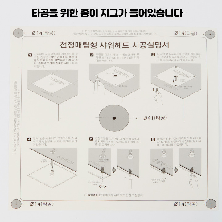 매립샤워용 천정매립형 사각레인헤드(300*300) _