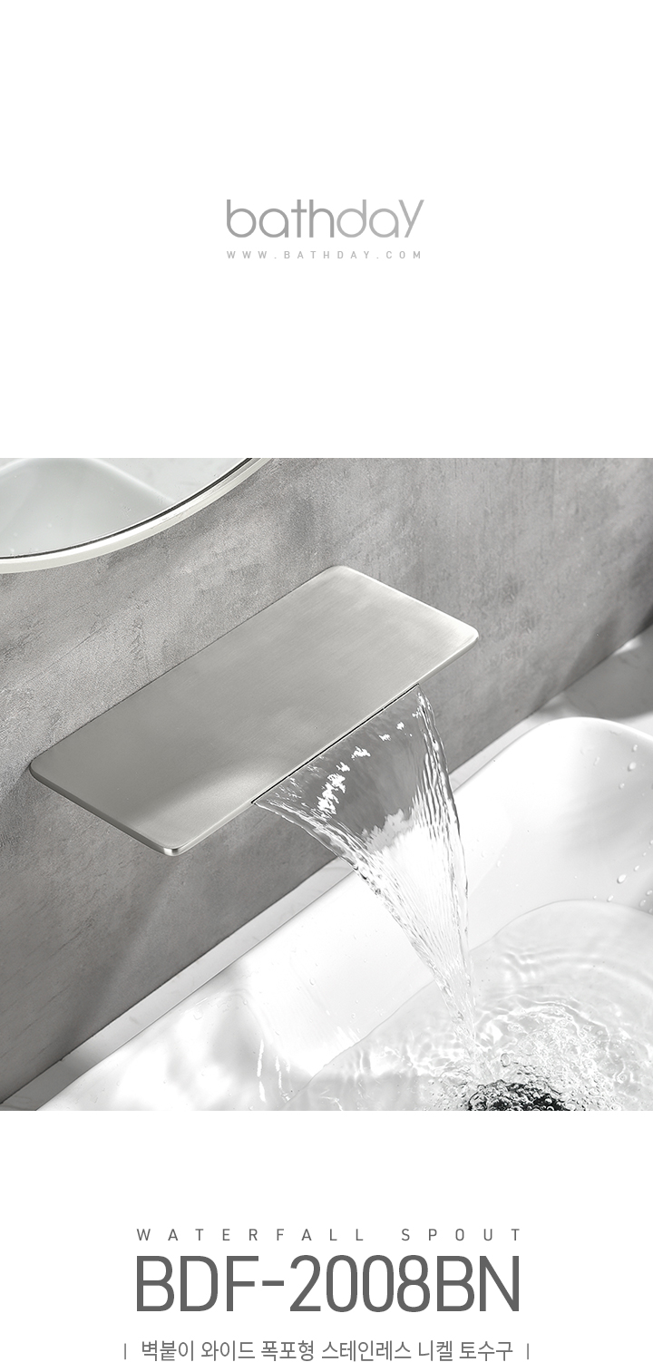 벽붙이 와이드 폭포형 스테인레스 니켈 토수구 2008BN
