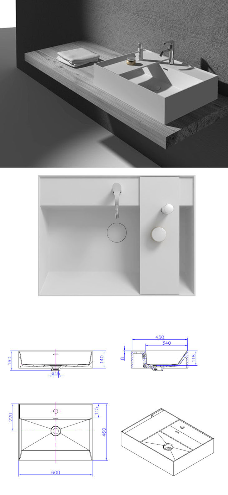 아이스톤 무광 인조대리석 이동선반 벽걸이 세면기 38331