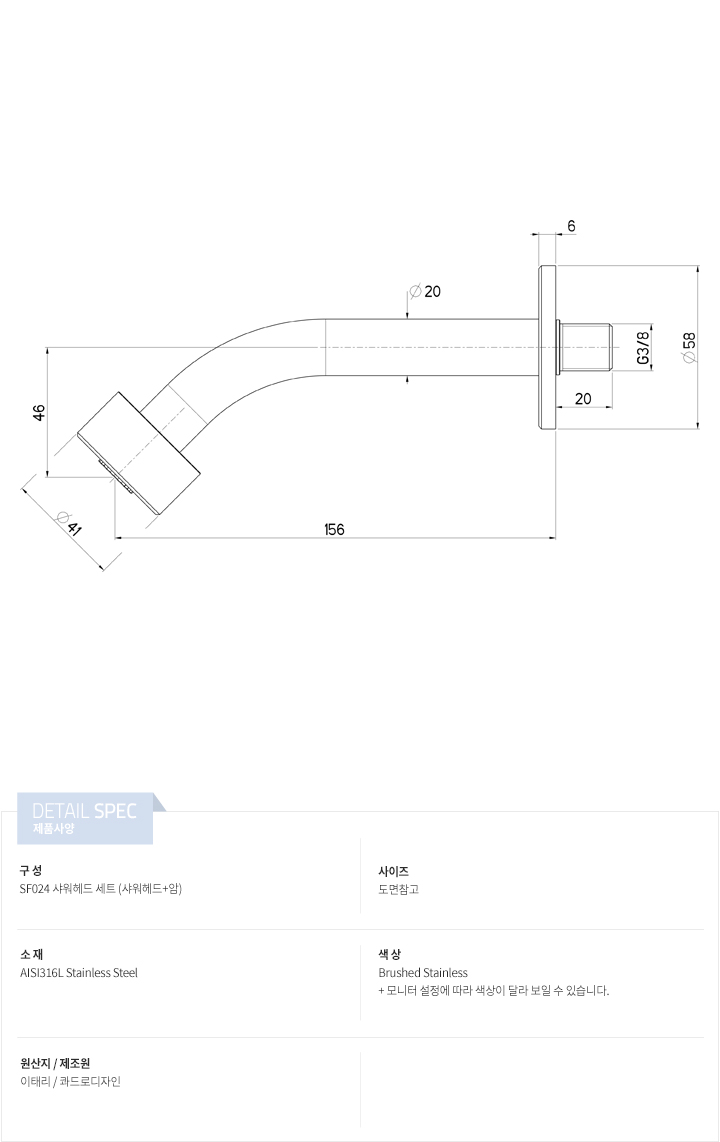 벽부형 샤워암이 포함된 SET 상품입니다. G 1/2 인치 유럽형 PF나사 적용.