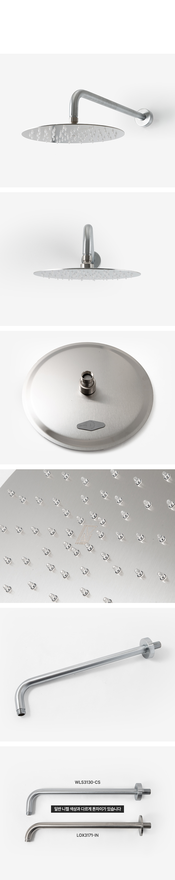 오딧세이 원형 250mm 샤워헤드세트 브러쉬드 크롬