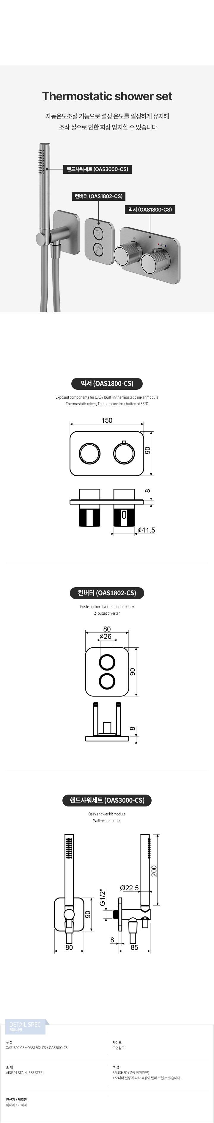 오딧세이 2WAY 버튼식 자동 온도조절 샤워세트 기본모듈 브러쉬드 크롬