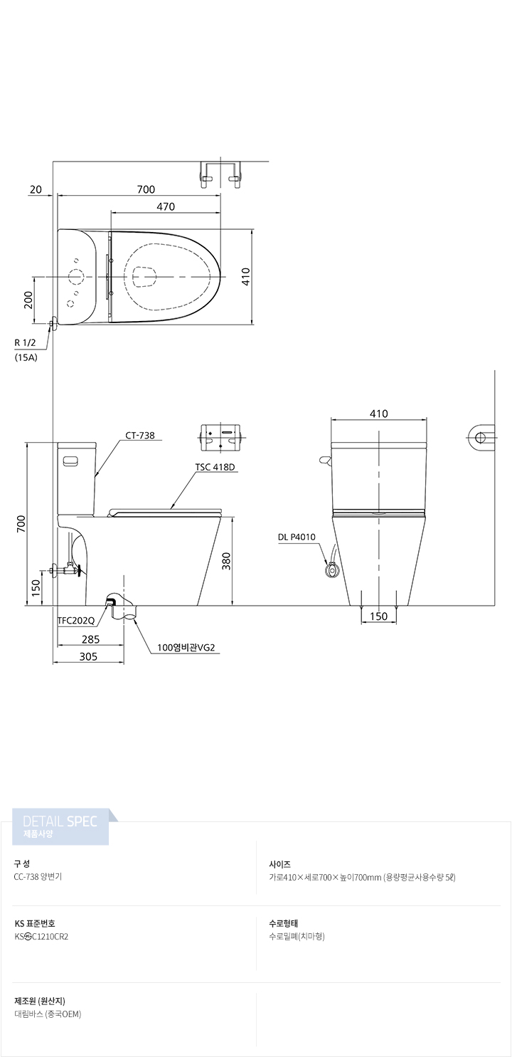 대림바스 아르노 라운드 림리스 투피스양변기_정품 부속 모두 포함