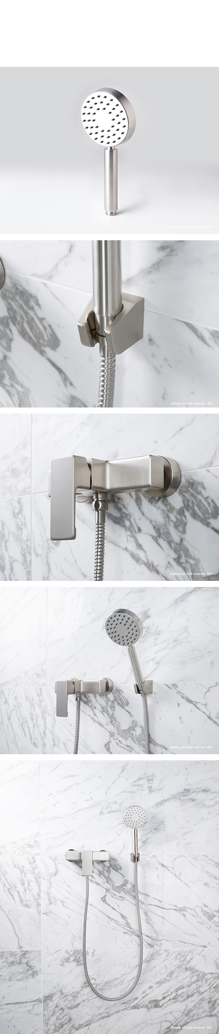 브러쉬드 마감 처리된 무광 사틴 니켈 벽붙이 샤워수전으로 벽붙이 샤워수전 SET판매입니다